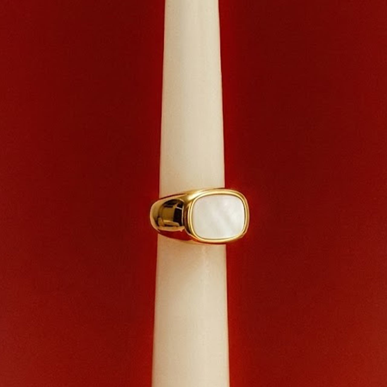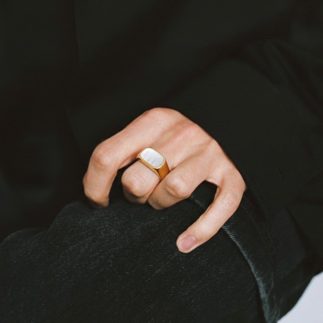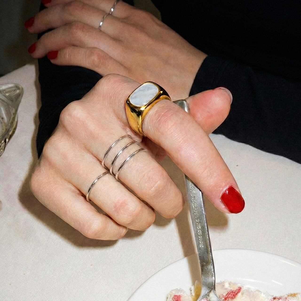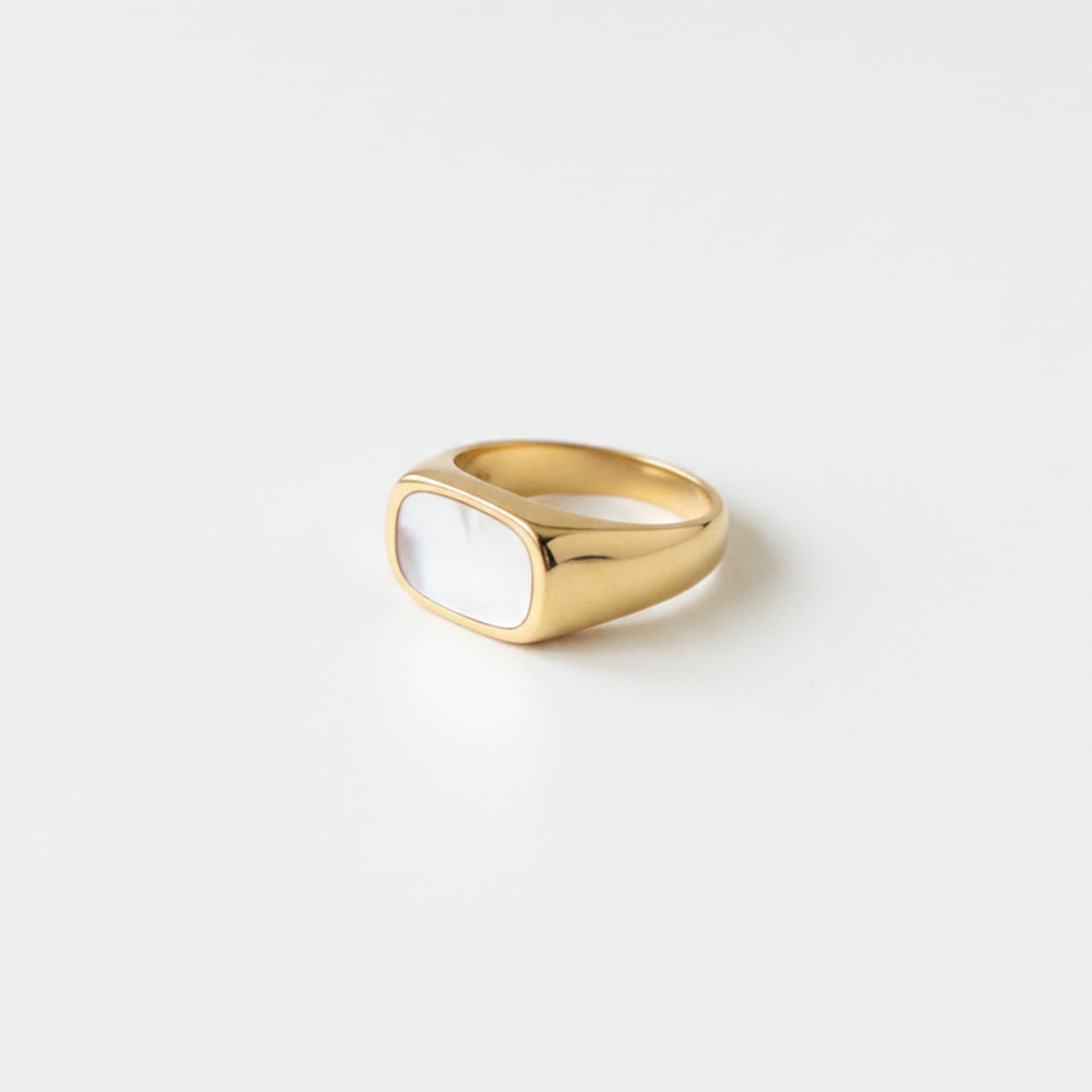 上品なシェルパールがアクセントなるおおぶりなリングです。