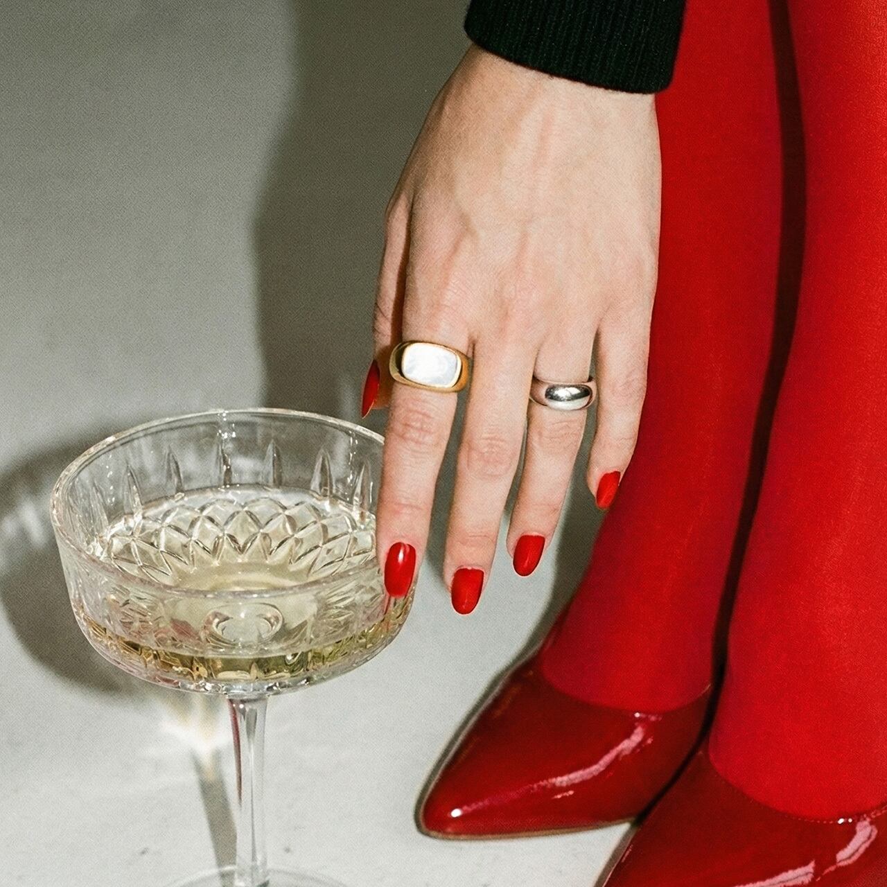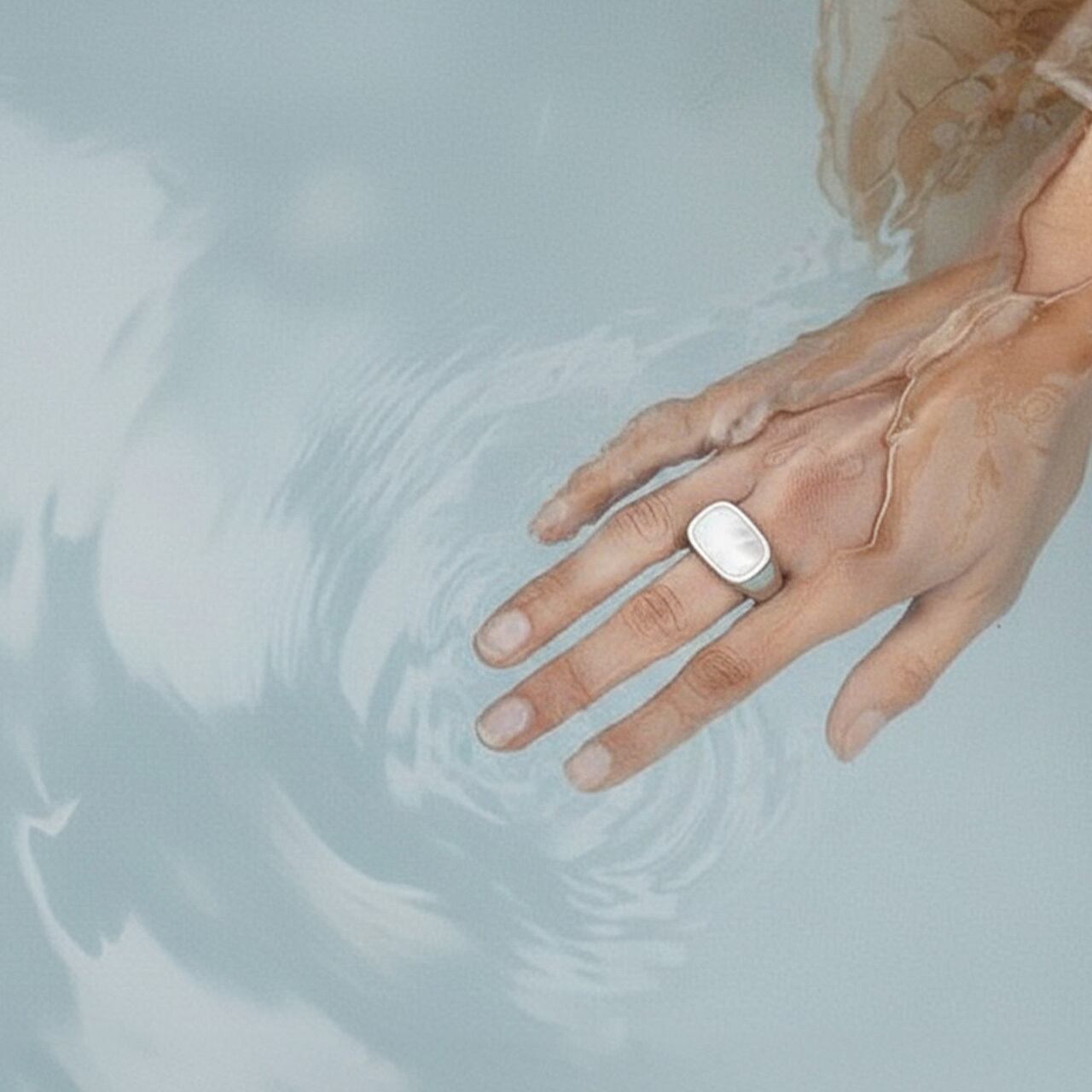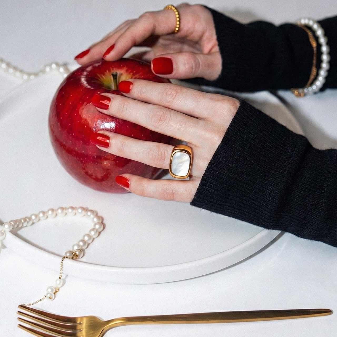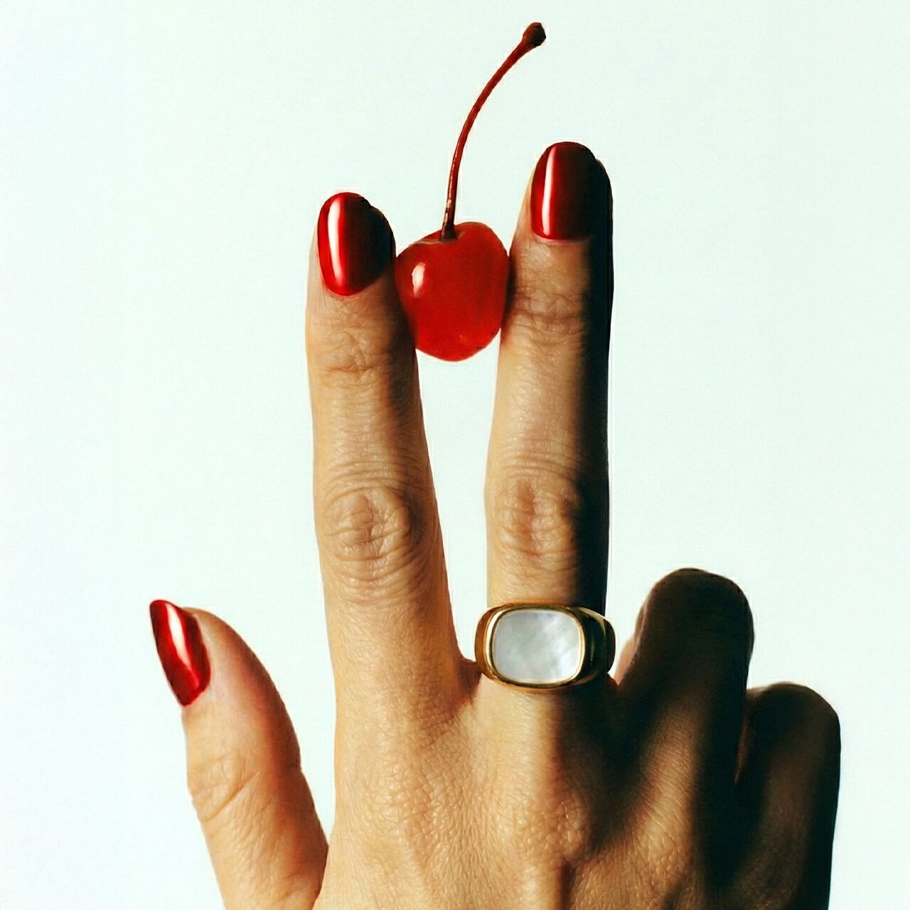 上品なシェルパールがアクセントなるおおぶりなリングです。