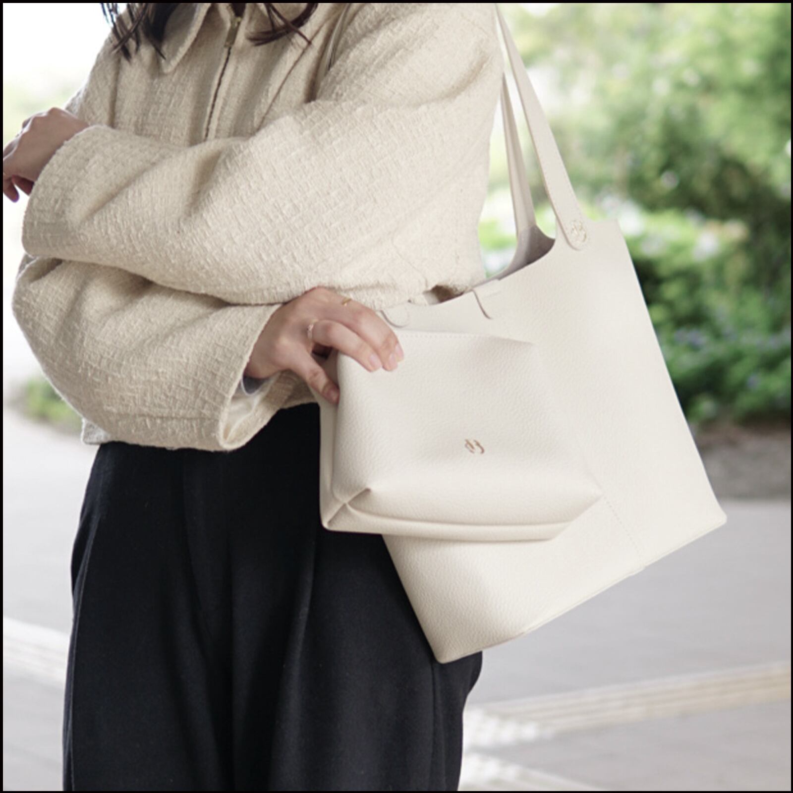 ・さりげないPUDIロゴがポイントのバッグ。